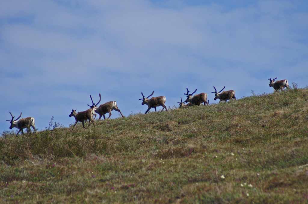 me at all, but quickly run up the slopes as a group of caribou move towards