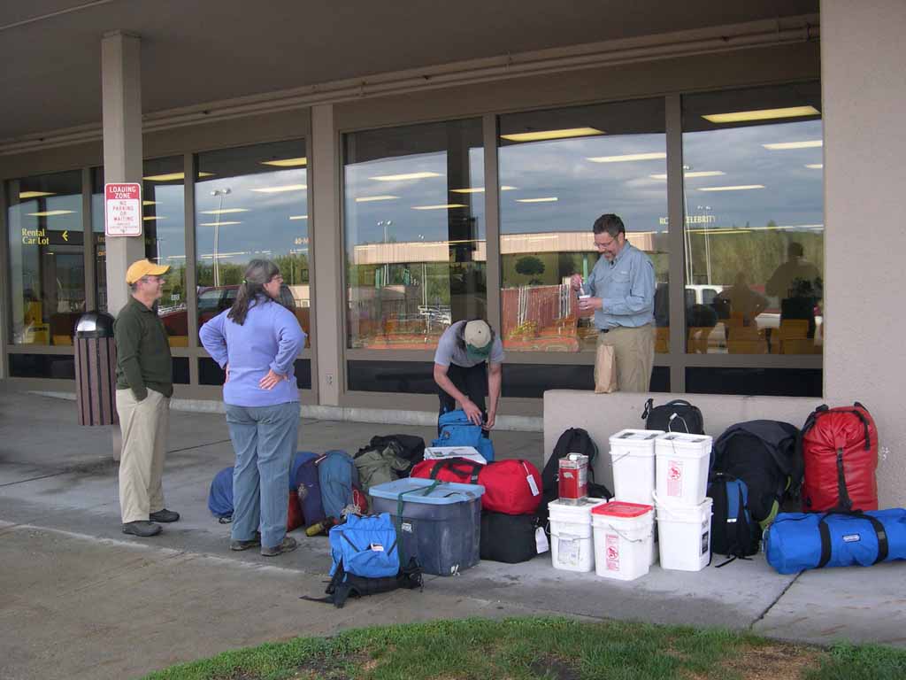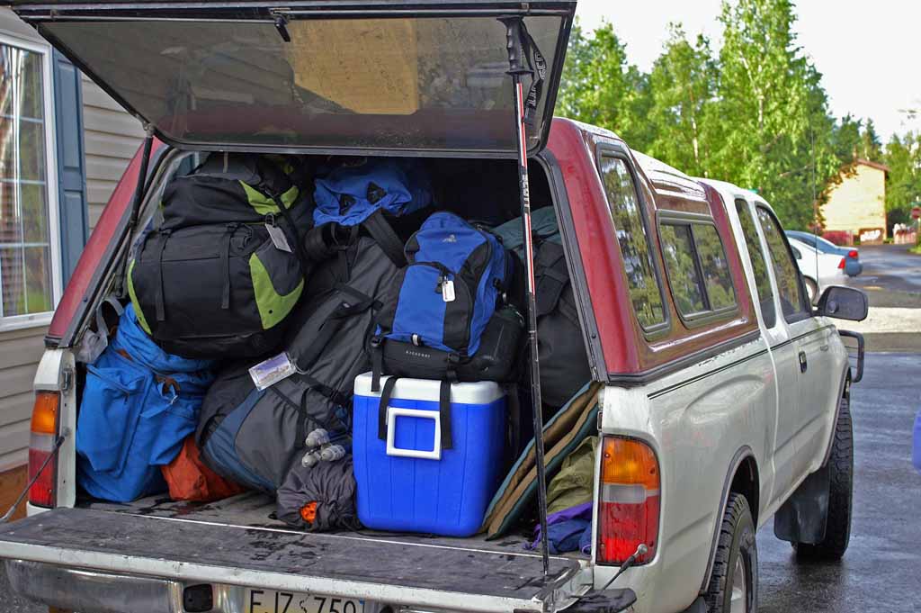 ready to go. The gear is piled into